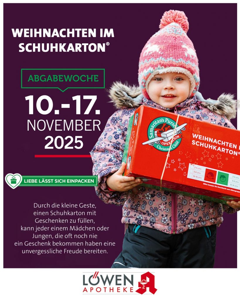 Abgabe der Päckchen bei uns in der Apotheke vom 10. – 17. November.